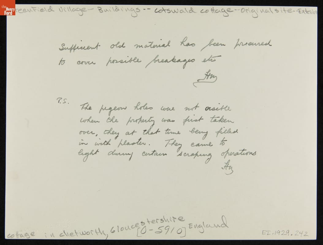 Cotswold Cottage at its Original Site, Chedworth, Gloucestershire, England, 1929-1930