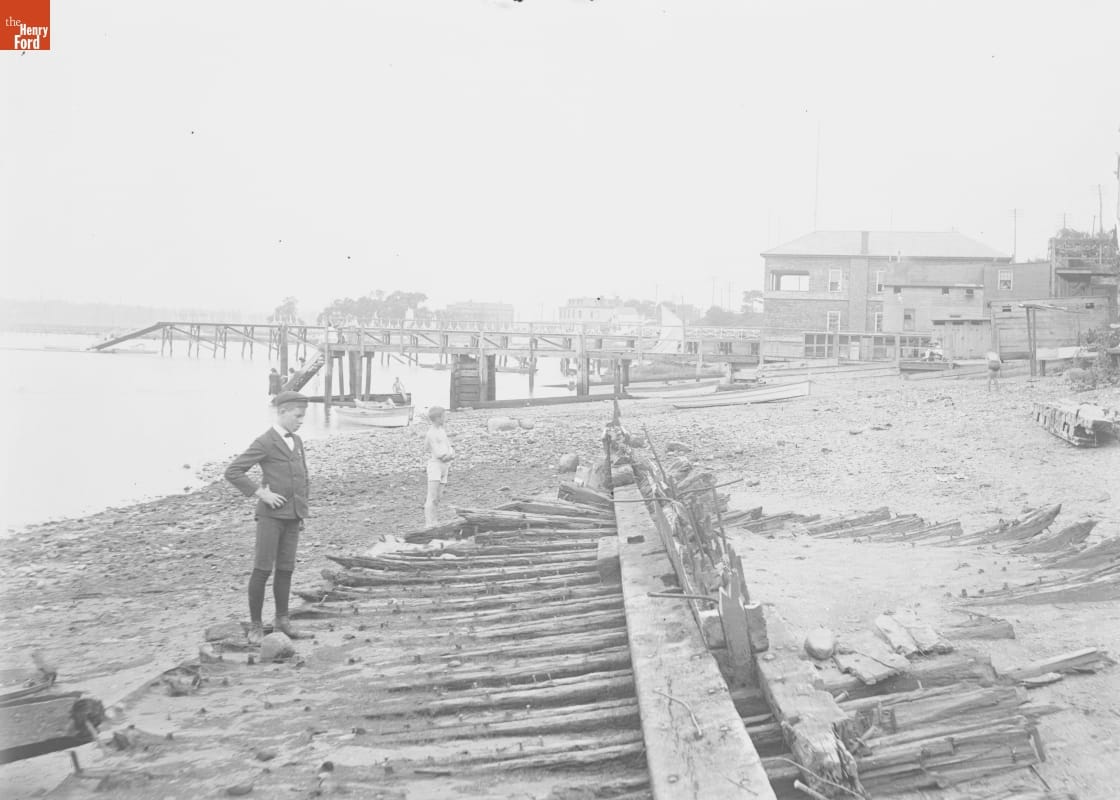 Flushing Bay, Will Adriance Looking at Wreck, 1890-1915
