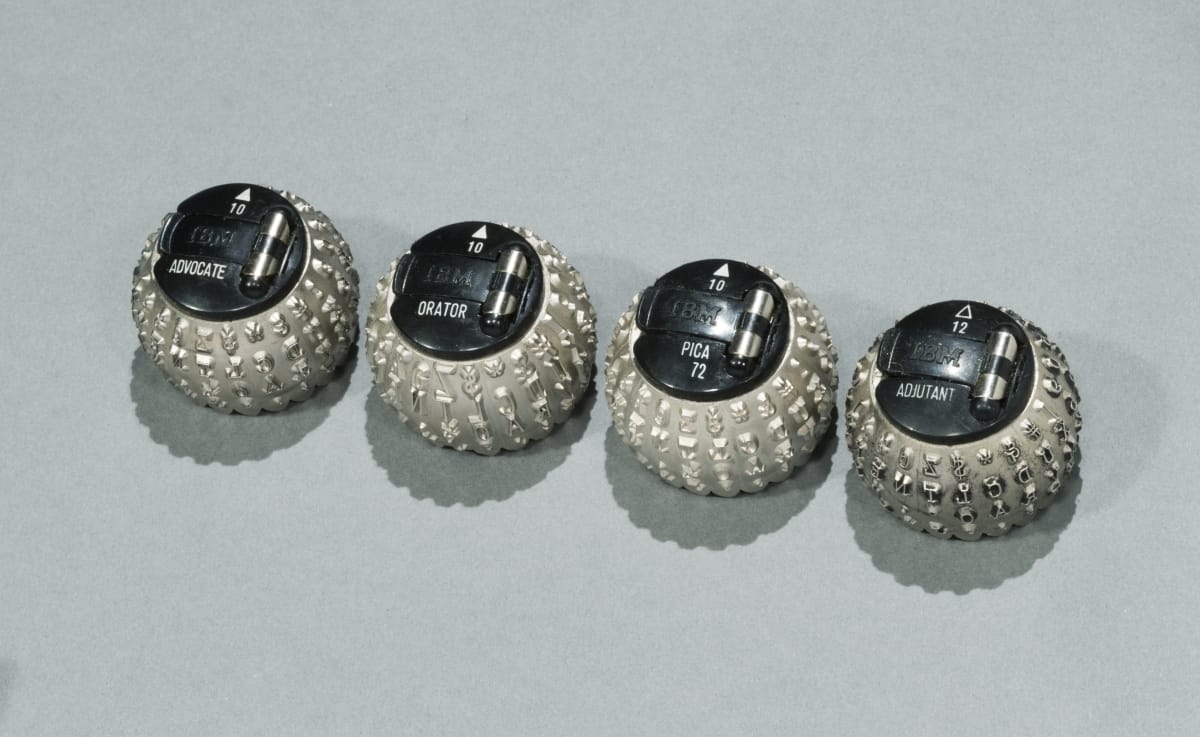In the mid-1950s IBM hired prominent designers to rebrand the company, to develop a corporate image that matched its vision for the future. This packaging for IBM's Selectric typewriter components features Paul Rand's "Medium City" logotype, used 1956-1972, and the "Eight-Bar," used 1972 to present. Rand's logo was applied to IBM's entire product line, creating a coordinated corporate identity.