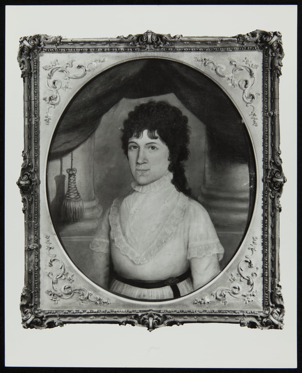 This is Eliza Webster Jones, one of Noah Webster's eight children. Webster was a family man, doting on his children and grandchildren and delighting in their activities. Eliza lived with her parents and the younger Webster siblings in the New Haven, Connecticut, home after it was completed in 1823. She married Henry Jones in 1825, probably about the time this painting was done.