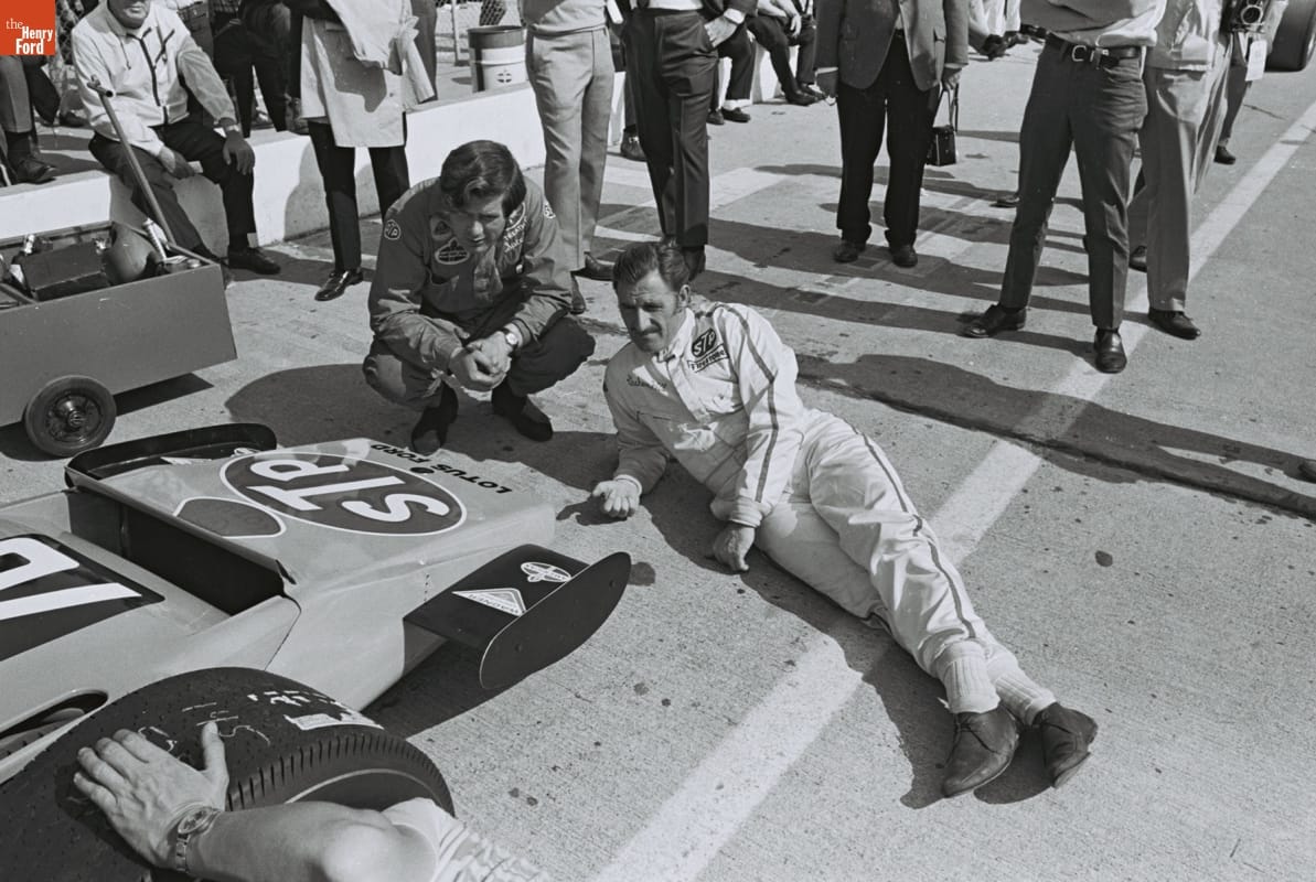 Dave Friedman has captured and preserved auto racing history through his photography. His work -- and his collection of works by other photographers -- documents key races, vehicles, drivers, and teams. Mario Andretti won the 1969 Indianapolis 500. The competition featured a field of 33 rear-engine vehicles -- the first time no front-engine cars qualified for the race.