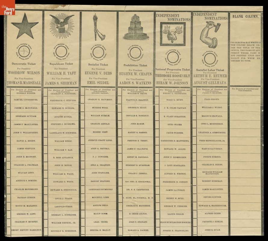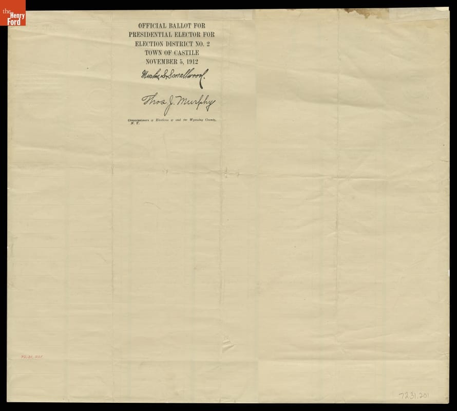 1912 Presidential Election Ballot for the Town of Castile, New York