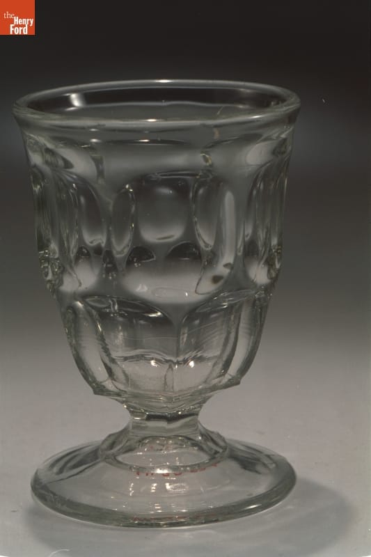 People have used eggcups for centuries. This small specialized tableware held soft-boiled eggs served in the shell. Pressed glass eggcups, like this one, could be found on middle class Americans' breakfast tables throughout the 19th century.