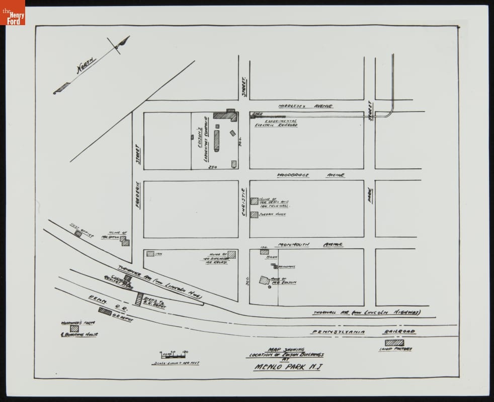 "Map Showing Location of Edison Buildings at Menlo Park, N.J.," circa 1880