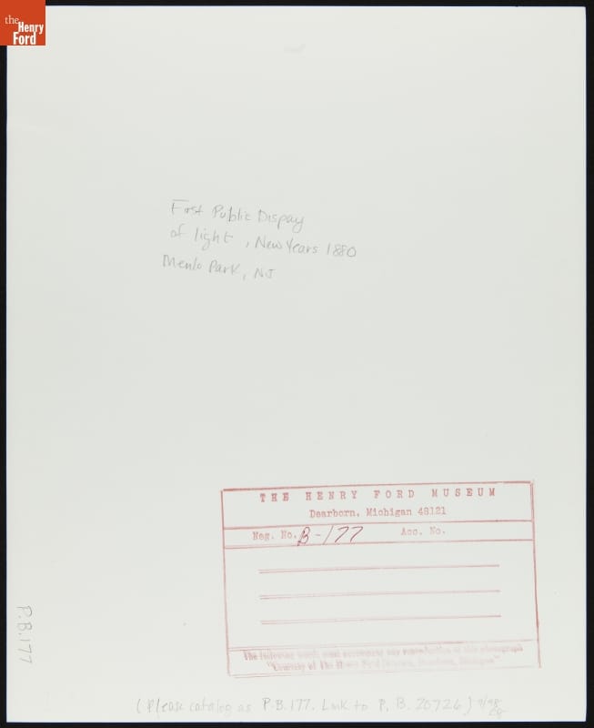 "First Public Demonstration of Incandescent Lighting by Thomas A. Edison, Menlo Park, New Jersey, December 31, 1879"