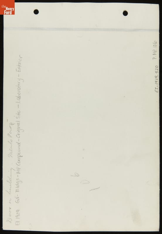 Menlo Park Laboratory Front Door after Relocation from New Jersey to Dearborn, Michigan, 1928-1929