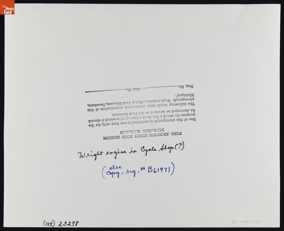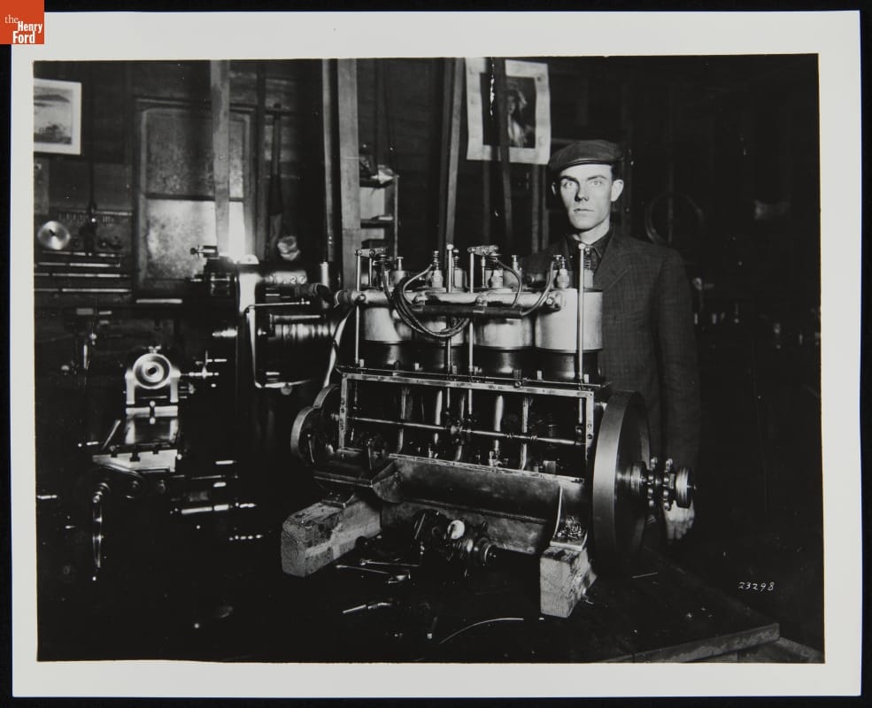 The Wright brothers introduced their first commercial aircraft, the Model B, in 1910. Approximately 100 copies were built. The Model B was powered by an inline four-cylinder engine of the type seen in this photograph. The water-cooled engine was rated at 36 horsepower and could push the airplane along at a cruising speed of about 40 miles per hour.