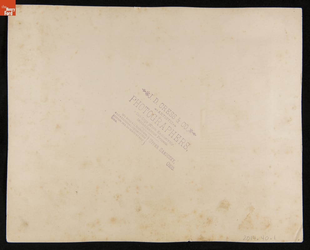 J. D. CRESS & CO., / ARTISTIC / PHOTOGRAPHERS, / Out-Door Work Exclusively. / Instantaneous Process. / We keep all Negatives, and additional copies of this picture may be made at any time. / UPPER SANDUSKY, OHIO.