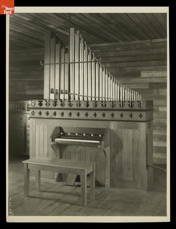 The Roosevelt Organ Company presented a pipe organ to Thomas Edison in 1878. Edison and his workers used it to conduct sound experiments and for entertainment during work breaks. The original organ was destroyed in a fire in 1914. Henry Ford had this replica made in 1929 as part of the detailed reproduction of Edison's Menlo Park Laboratory in Greenfield Village.