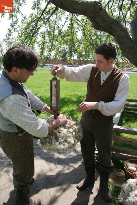 Weighing the Wool Fleece from Merino Sheep-Shearing Demonstration, Greenfield Village, April 2010