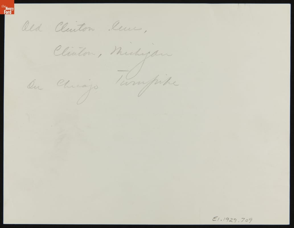 This tavern, constructed 1831-2 in Clinton, Michigan, was originally a stagecoach stop on the Detroit-to-Chicago road. In 1927, Henry Ford purchased the run-down building from resident Ella Smith -- the daughter of Walter Smith, who had run the hostelry as Smith's Hotel between 1868 and 1896. Moved to Greenfield Village, the restored and renamed Clinton Inn opened in 1929.