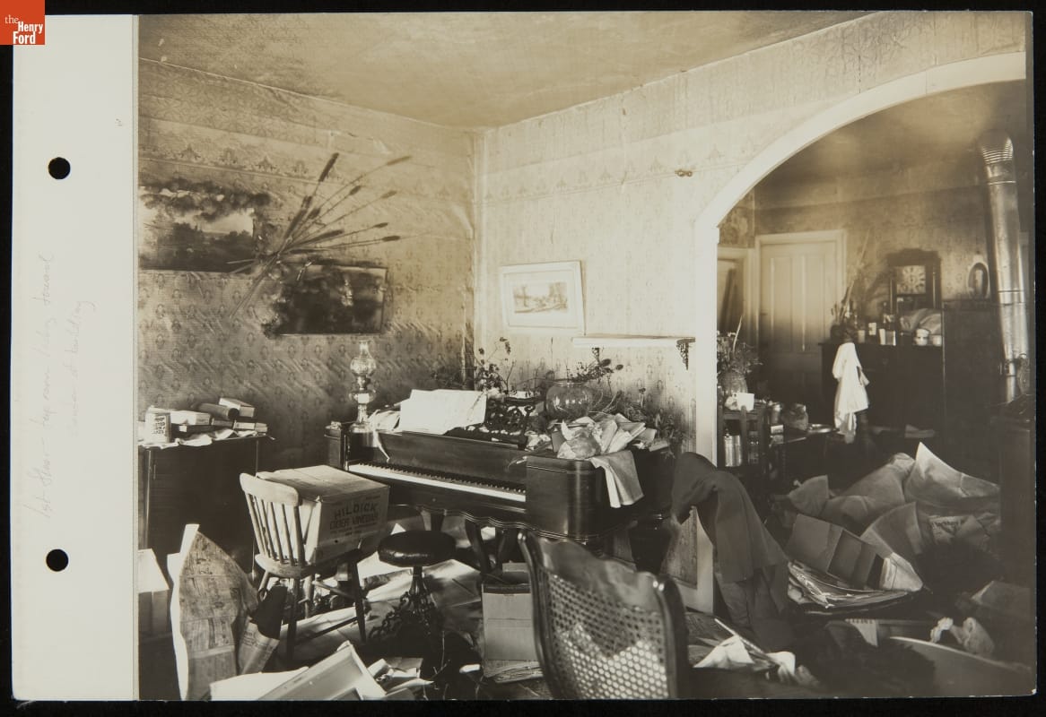 Eagle Tavern was built in 1831-2 as a stagecoach stop along the Detroit-to-Chicago road. In the early 1900s, during its use as a private residence, this former hotel and tavern fell into disrepair. Interior photographs from 1925 show neglected and deteriorating rooms. Two years later, Henry Ford bought the structure and relocated it to Greenfield Village for restoration.