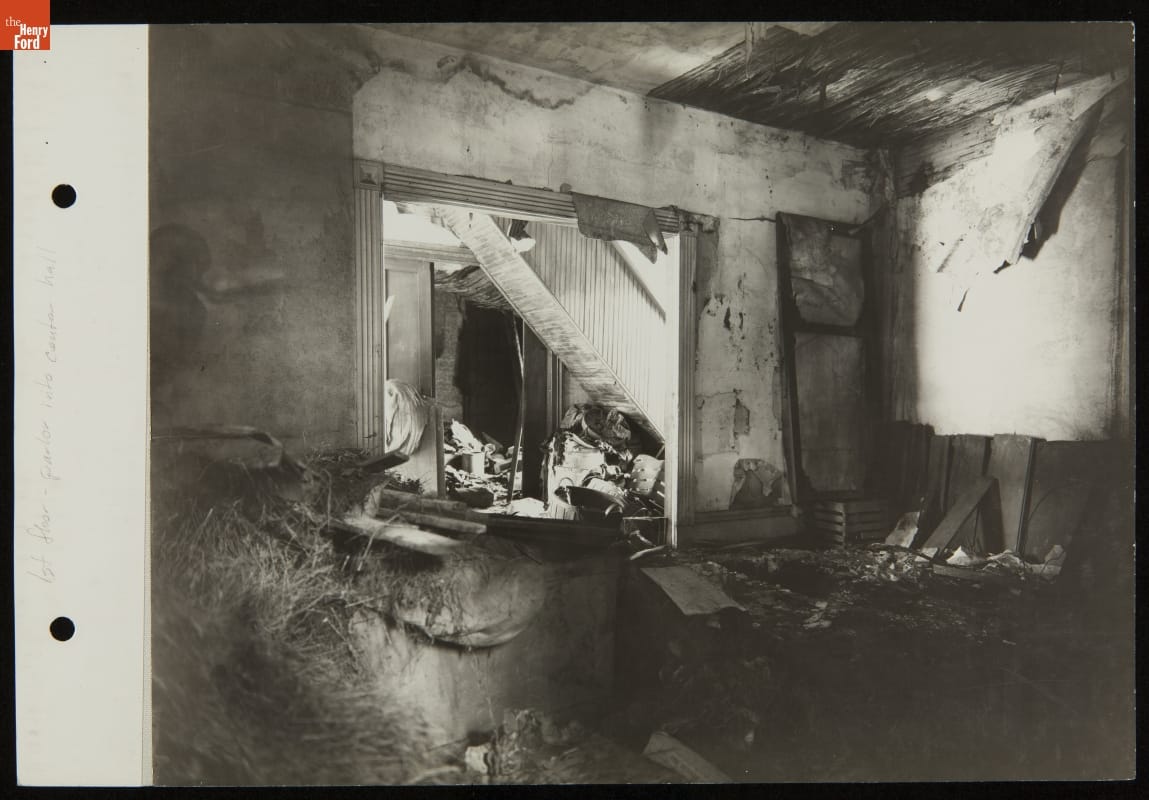 Eagle Tavern was built in 1831-2 as a stagecoach stop along the Detroit-to-Chicago road. In the early 1900s, during its use as a private residence, this former hotel and tavern fell into disrepair. Interior photographs from 1925 show neglected and deteriorating rooms. Two years later, Henry Ford bought the structure and relocated it to Greenfield Village for restoration.