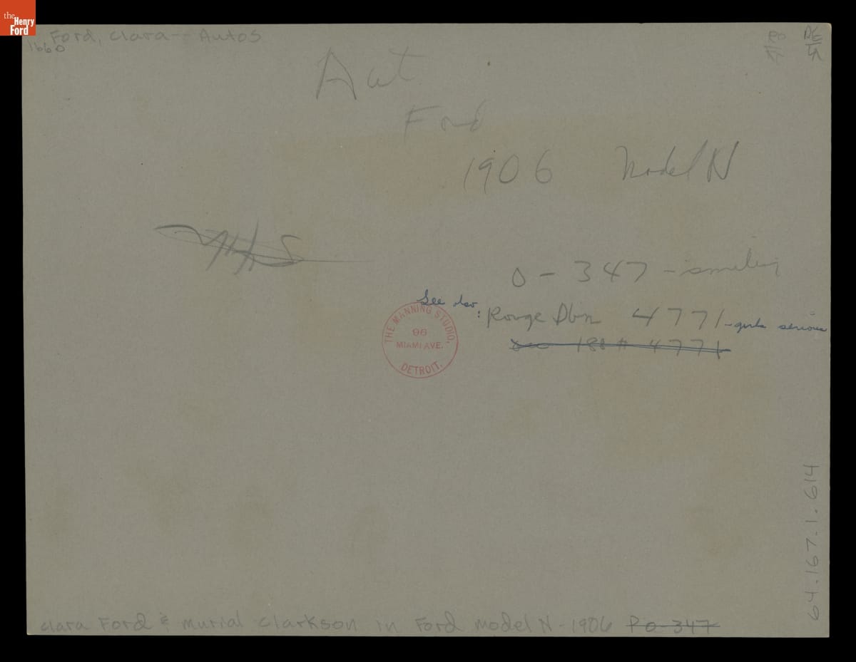 In 1906, Clara Ford, wife of Henry Ford, and Myrle Clarkson, a secretary at the Ford Piquette Avenue Plant, took a Model N out for a spin. The two drove from the plant where the Model N was built around the streets of Detroit. The Model N was the low-priced but smaller predecessor to the Model T.