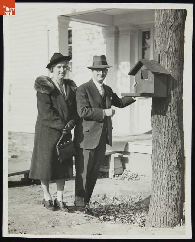 George Matthew Adams and his Sister Jessie Visiting the Adams House in Greenfield Village, Dearborn, Michigan, October 24, 1940