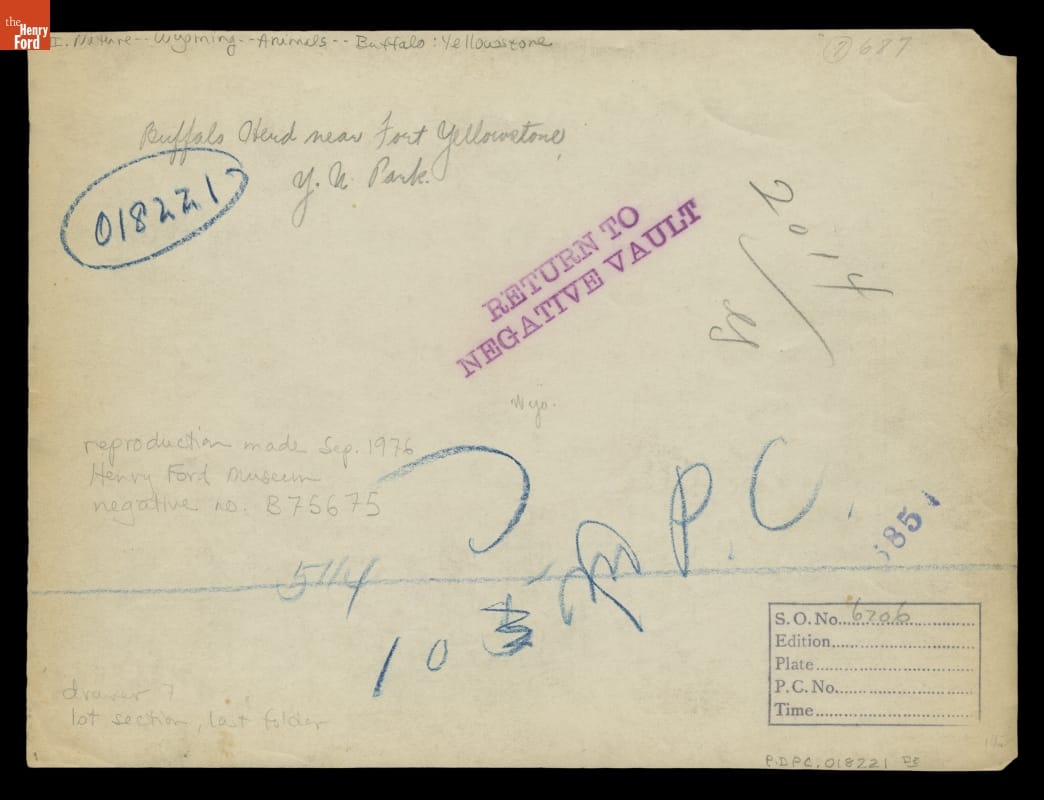 - In pencil at top: Buffalo Herd near Ft. Yellowstone / Y. N. Park