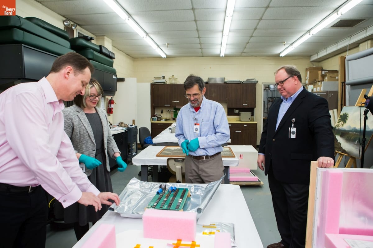 November 25, 2014, was an exciting day at The Henry Ford. These images capture the arrival of a new acquisition--a 1976 Apple 1 computer. This particular Apple 1 was one of the first 50 ever assembled by Steve Wozniak, at the home of Steve Jobs. Its functioning motherboard was accompanied by hardware, schematics, and a historical document collection.