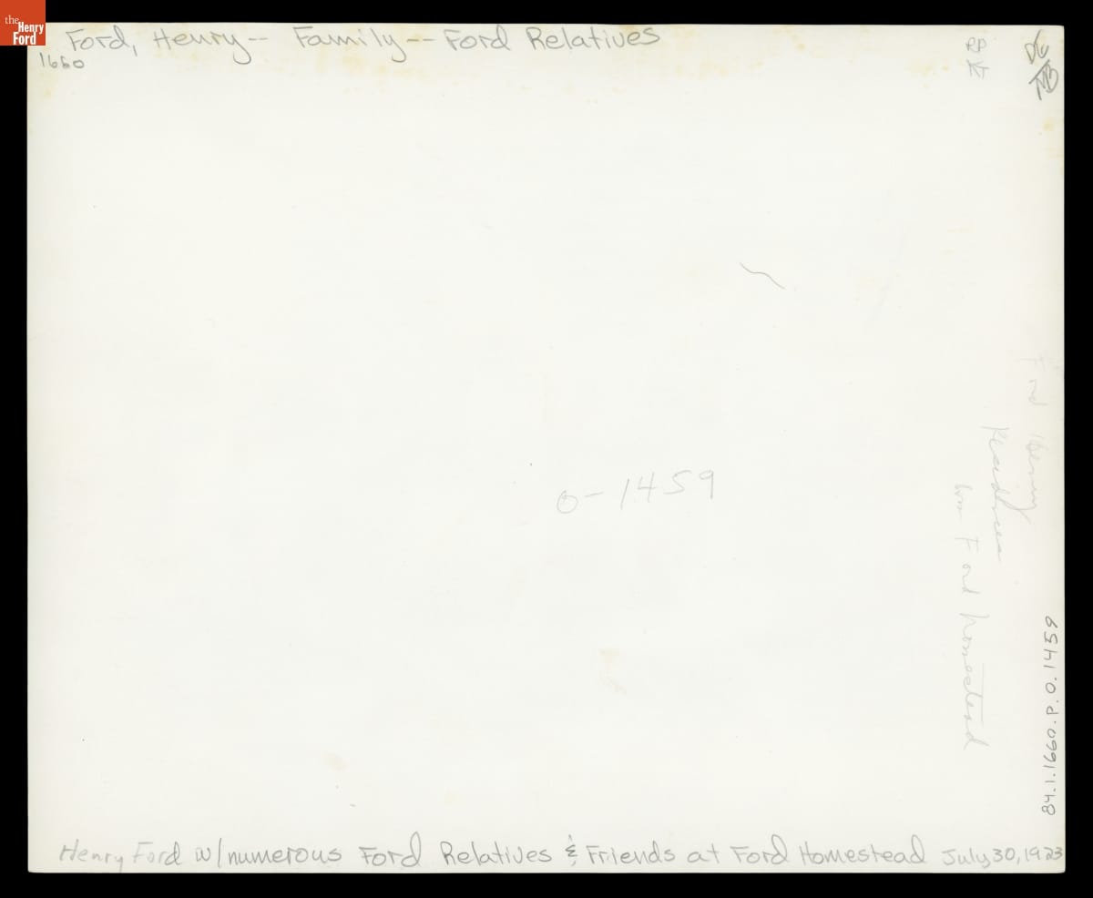 Henry Ford with Group at Ford Homestead on His 60th Birthday, July 30, 1923