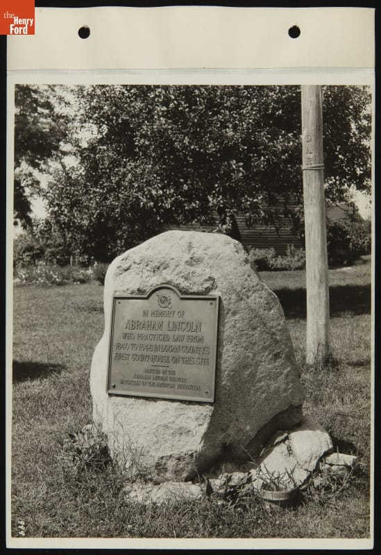 Historical Marker near Logan County Courthouse at Its Original Site, Lincoln, Illinois, September 1929