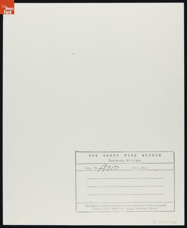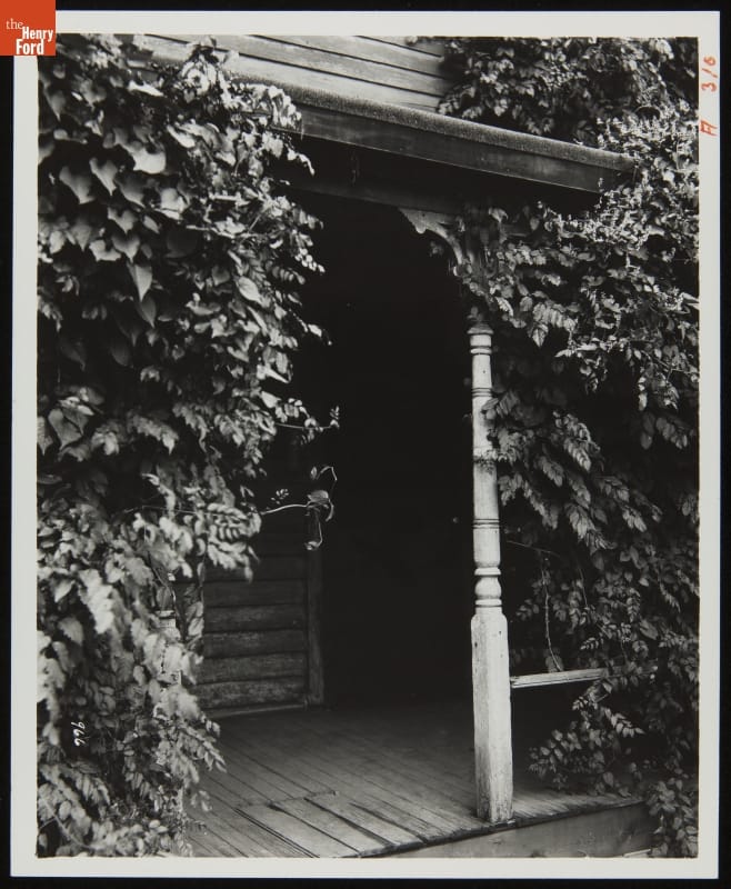 Henry Ford wanted an Abraham Lincoln-related building for Greenfield Village. In 1929, Ford found the old Logan County, Illinois, courthouse where Lincoln had tried cases when he was a traveling lawyer and purchased it. The building by this time had become a private residence. This photograph, taken when the building was still located on its original site, documents the porch once attached the front of the building.