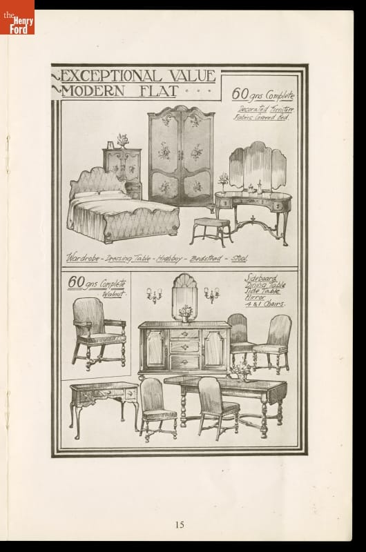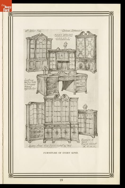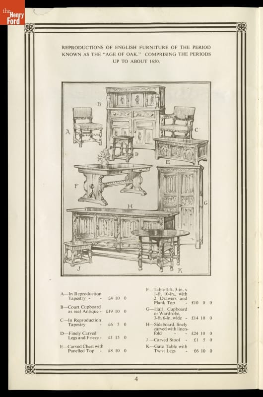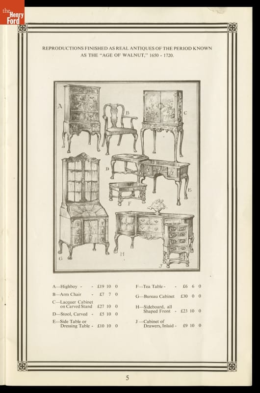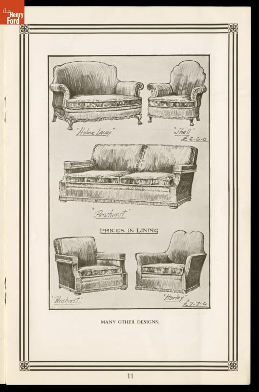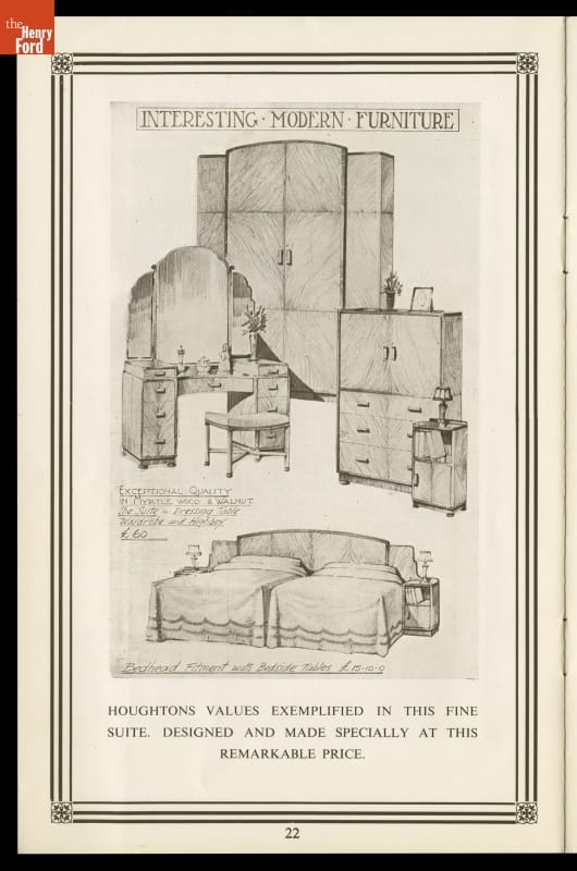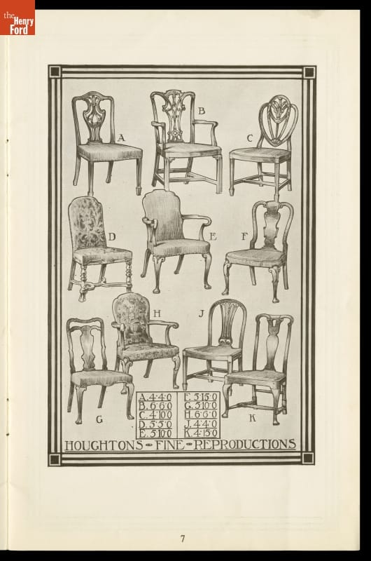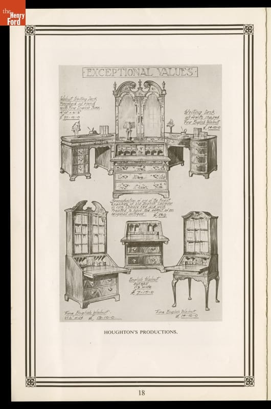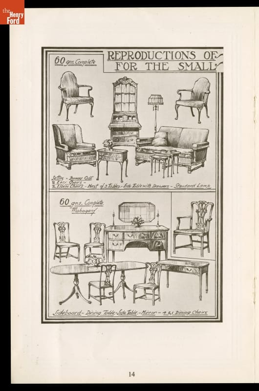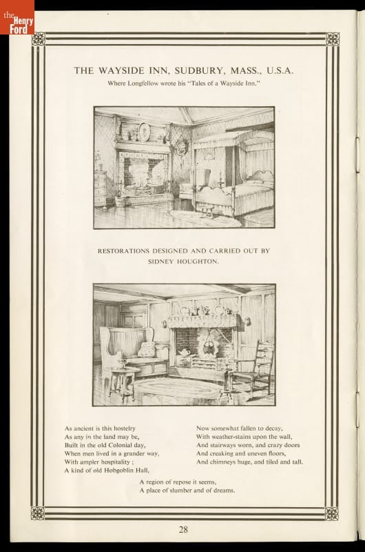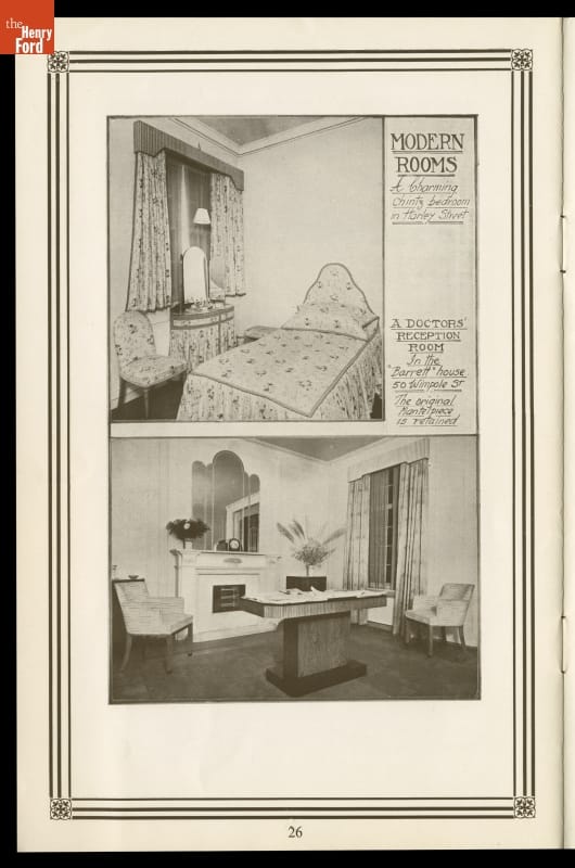 London-based interior designer Sidney Houghton was commissioned by Henry Ford for several projects. This catalog contains samples of Houghton's work. It features designs for the Sialia yacht, the Fair Lane private railcar, Wayside Inn, and Henry Ford's and Edsel Ford's offices in the Ford Engineering Laboratory. Houghton also worked on the Dearborn Country Club and Henry Ford's Fair Lane estate.