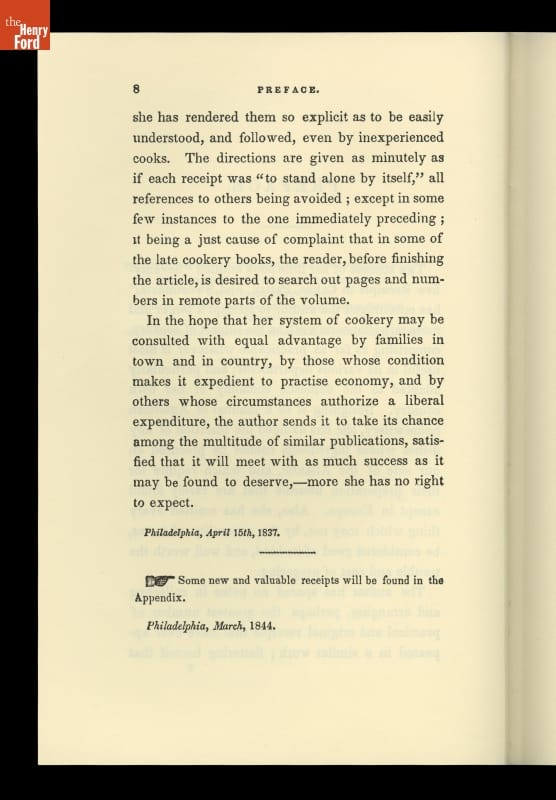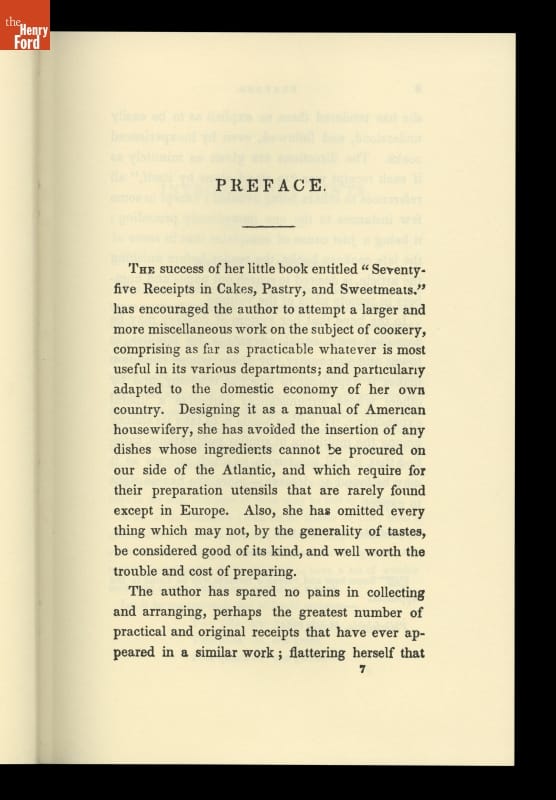 The 1982 transformation from the cafeteria-style Clinton Inn to the restaurant-style Eagle Tavern of the 1850s era included research on period foods, recipes, and menus. This was one of several cookbooks used in the research and testing of recipes for the new menus.