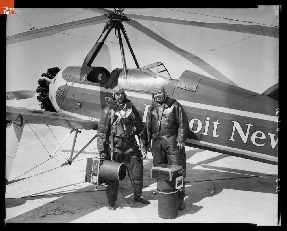 The Detroit News operated an autogiro from 1931 to 1933. The novel aircraft carried a large, swiveling camera to take aerial photos of newsworthy events and transported reporters for quickly developing stories. However, it ultimately proved more useful as an advertisement for the paper. The autogiro made over 700 flights before it was donated to Henry Ford's museum in Dearborn.