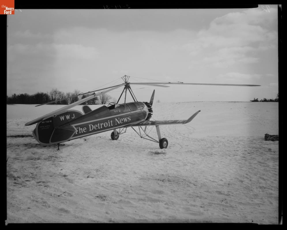 The Detroit News operated an autogiro from 1931 to 1933. The novel aircraft carried a large, swiveling camera to take aerial photos of newsworthy events and transported reporters for quickly developing stories. However, it ultimately proved more useful as an advertisement for the paper. The autogiro made over 700 flights before it was donated to Henry Ford's museum in Dearborn.
