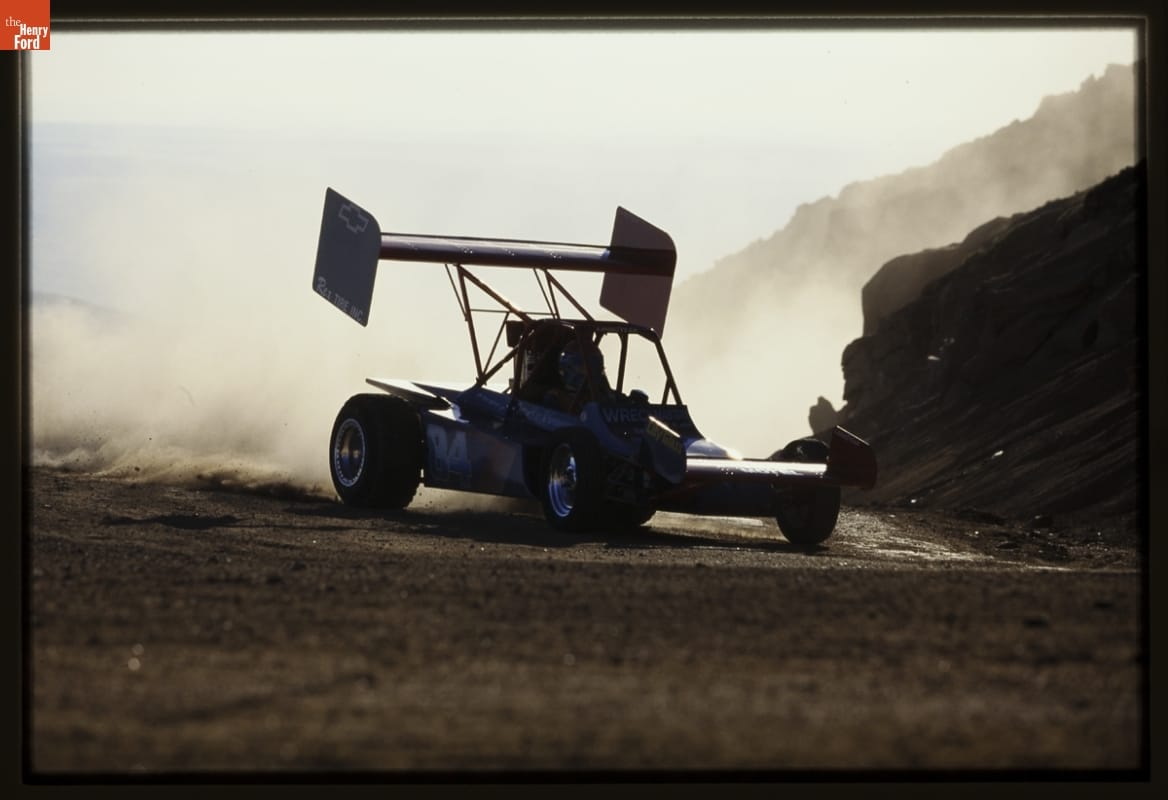 First held in 1916, Colorado's Pikes Peak International Hill Climb is known as the "Race to the Clouds." Cars climb 4,720 feet over the 12.42-mile race course. Drivers negotiate 156 turns along the twisting mountain route. Few of those turns are protected by guard rails, and some have drop-offs exceeding 1,000 feet.