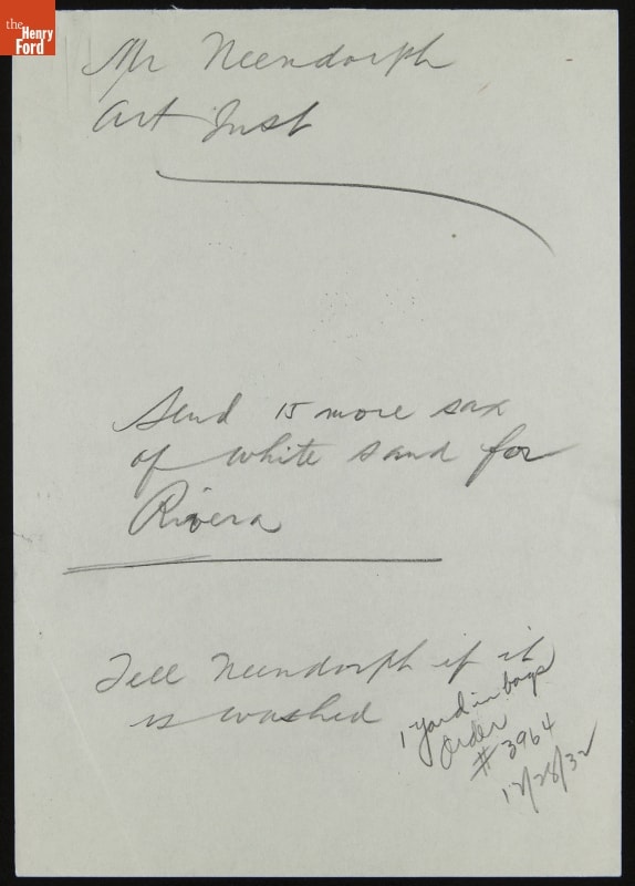Note Requesting Additional Sand For Diego Rivera, 1932