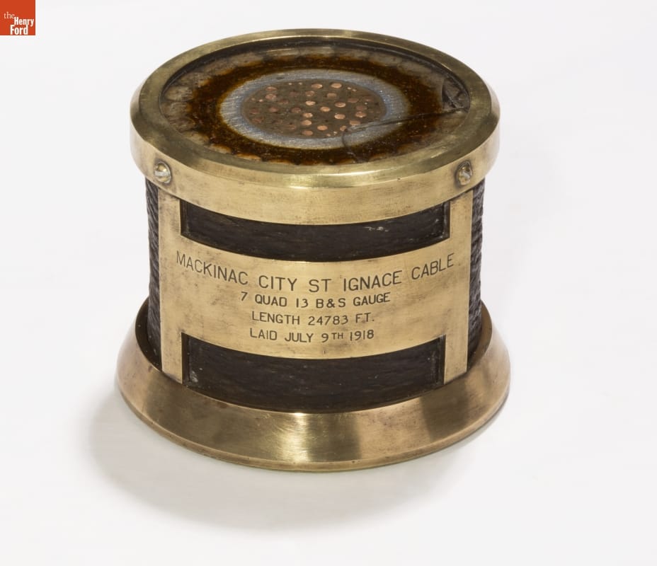 Made by Western Electric Company, headquarters New York, New York, for use by Michigan State Telephone Company as a submarine cable connecting the upper and lower peninsulas of Michigan between Mackinaw City and St. Ignace.