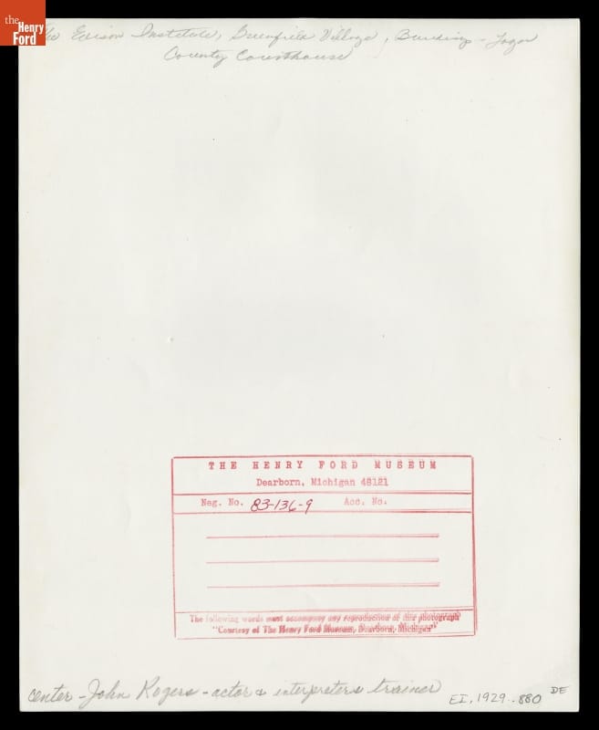 Actors inside Logan County Courthouse, Greenfield Village, 1983