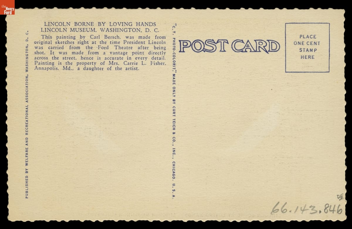 "Lincoln Borne by Loving Hands--Lincoln Museum, Washington, D.C.," 1935 Postcard