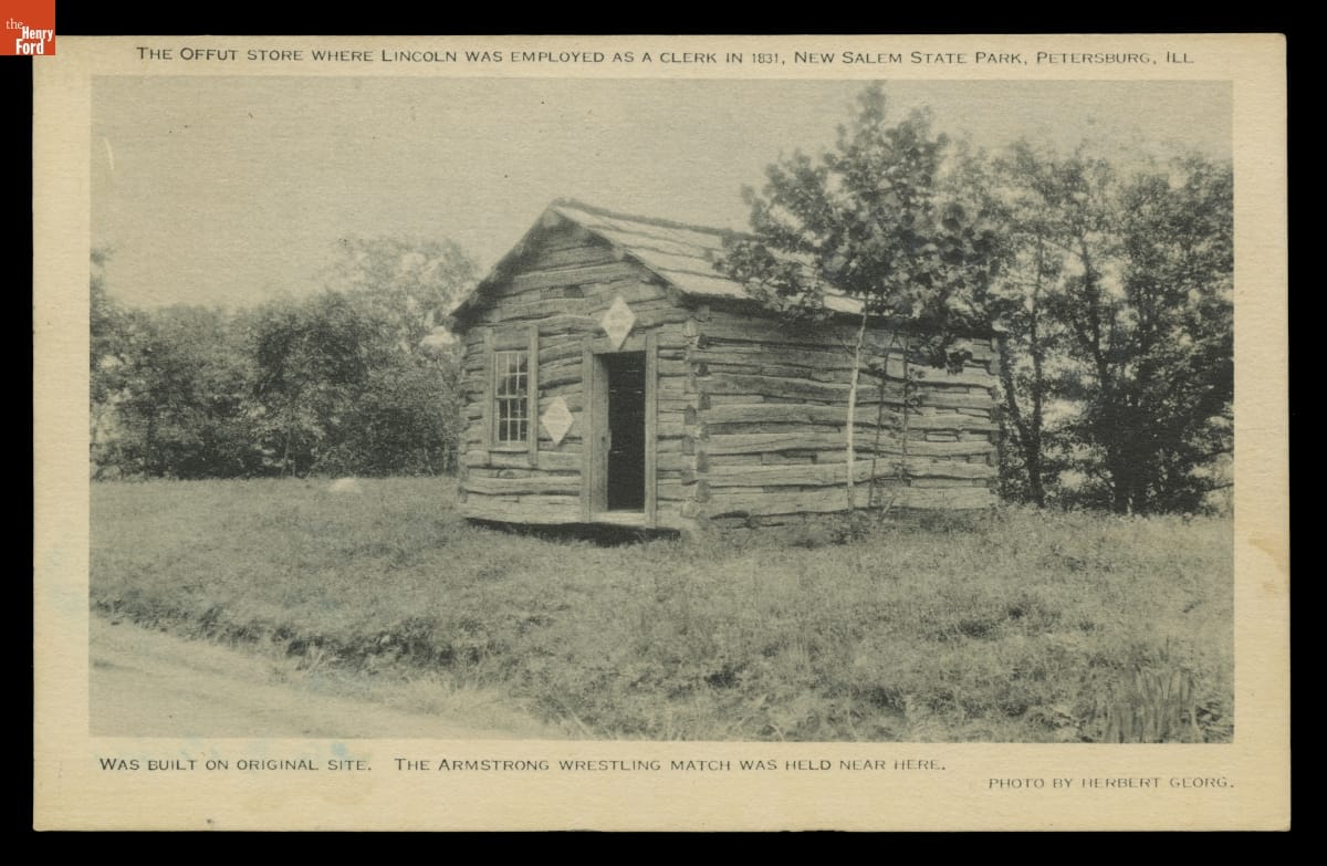 "The Offut Store Where Lincoln Was Employed as a Clerk," New Salem State Park, Petersburg, Ill., circa 1920 Postcard