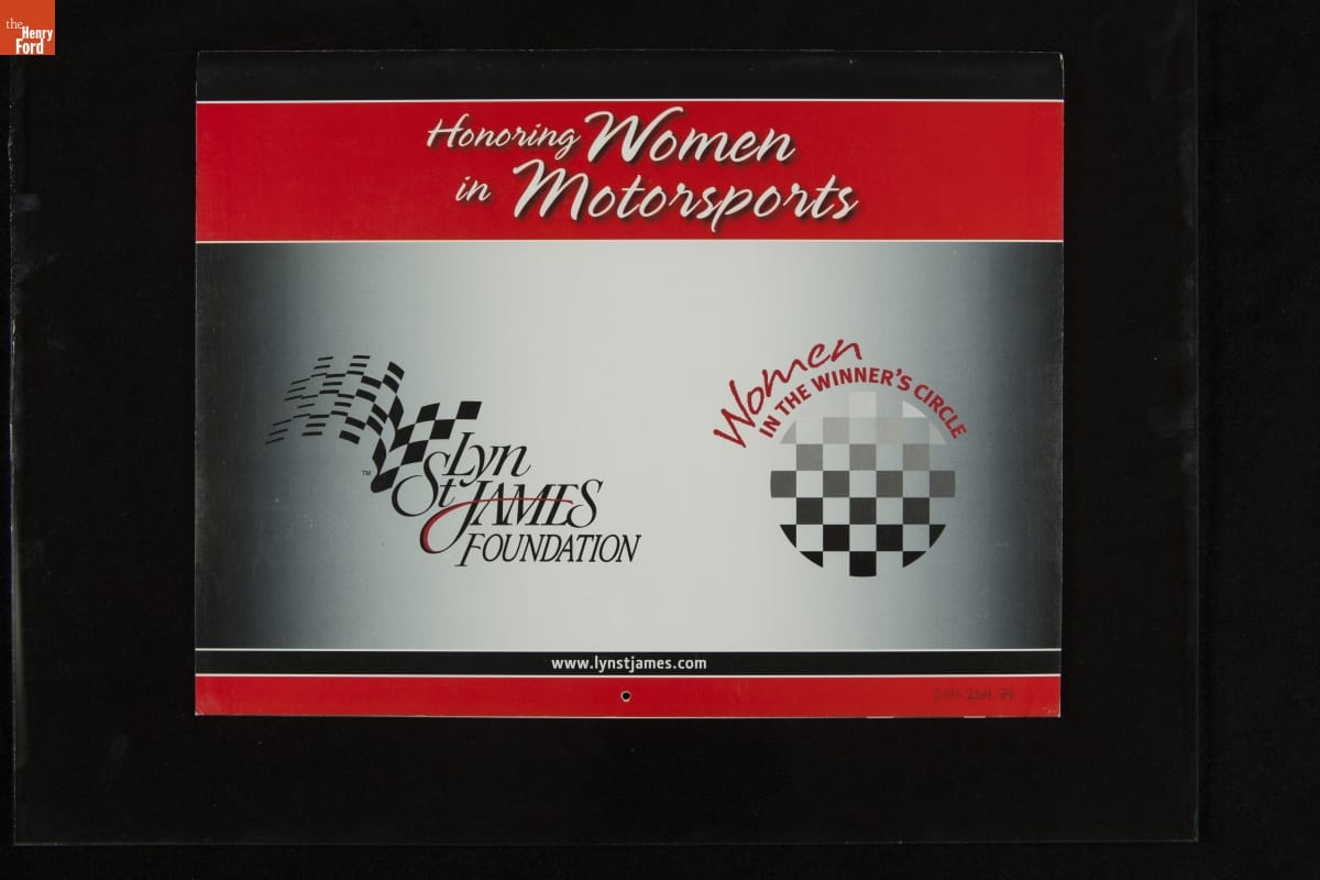 The Lyn St. James Foundation created this calendar honoring women in racing. Featured racers included Janet Guthrie, first woman to start the Indianapolis 500 and Daytona 500; Shirley Muldowney, four-time NHRA Top Fuel champion; and Desire Wilson, only woman to win an F1 race of any kind. Proceeds from the calendar's sale supported the foundation's mission to advocate for women in motorsports.