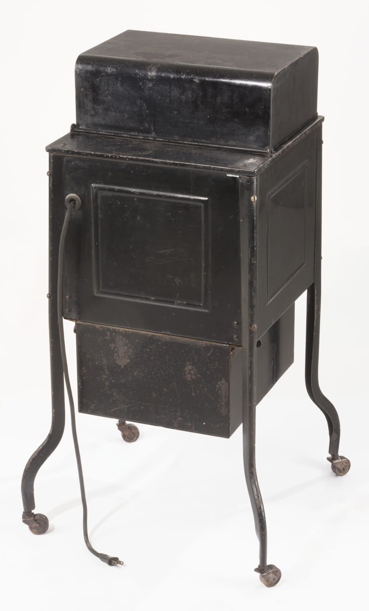 Dictaphones and Ediphones were sound recording devices largely used for oral dictation in business settings. In this scenario, wax cylinder recordings were passed to a secretary, who listened to the recording with a playback-only transcriber and then typed up notes. A shaving machine, such as this one, scraped the previously inscribed layer away allowing a wax cylinder to be reused over 100 times.