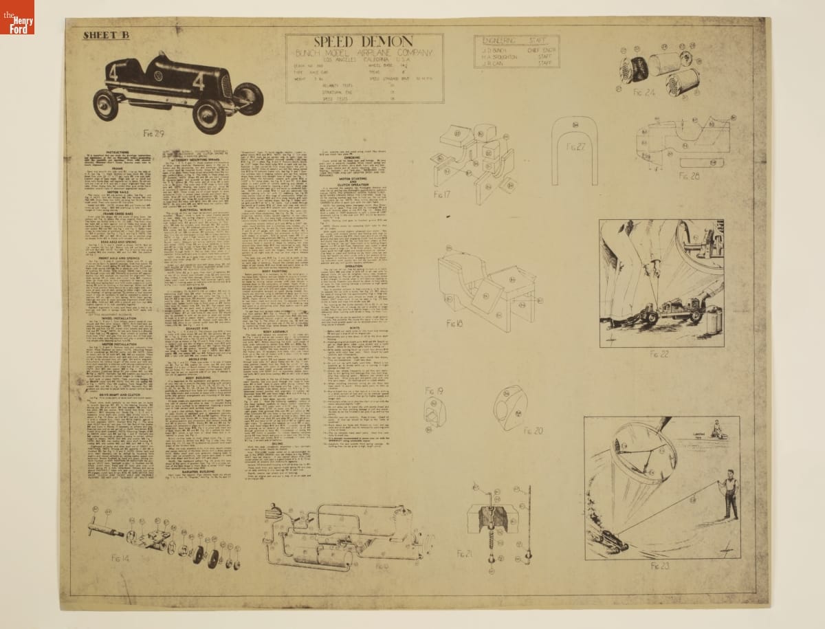 Product Package and Assembly Instruction for "Speed Demon" Gas-Powered Racing Tether Car, 1930-1940