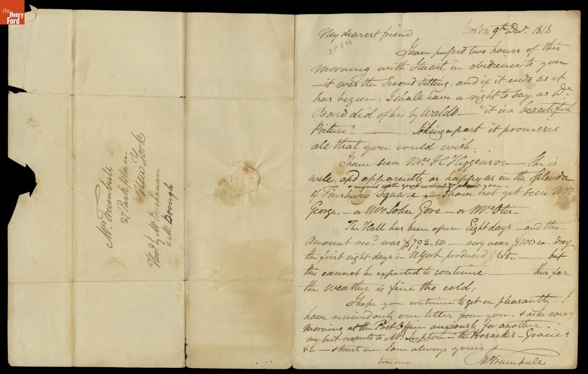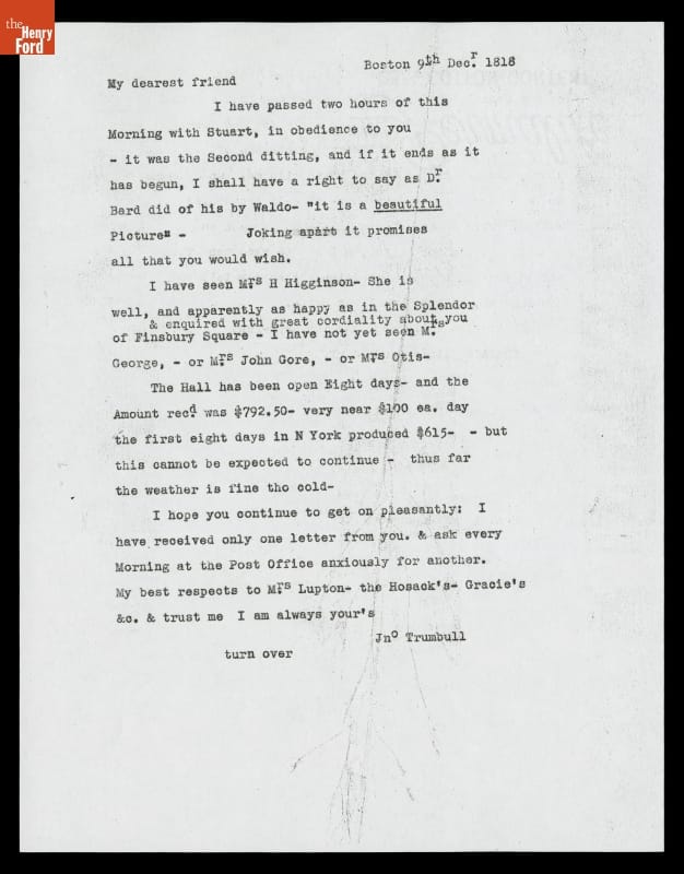 Letter from John Trumbull to Sarah Hope Harvey Trumbull, December 9, 1818