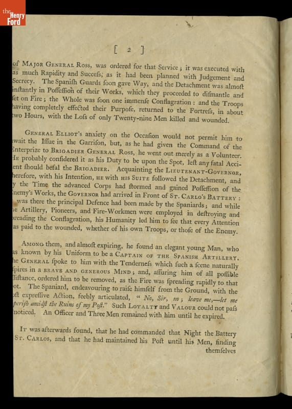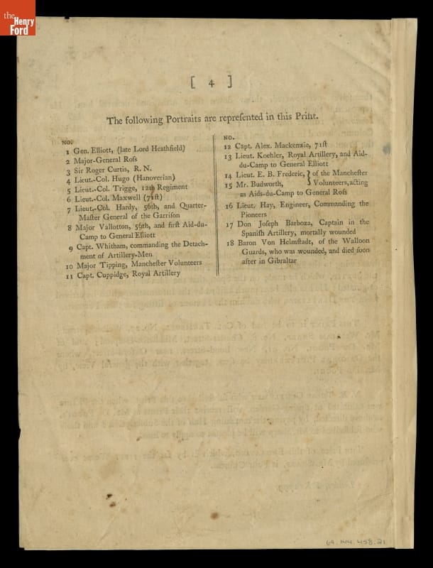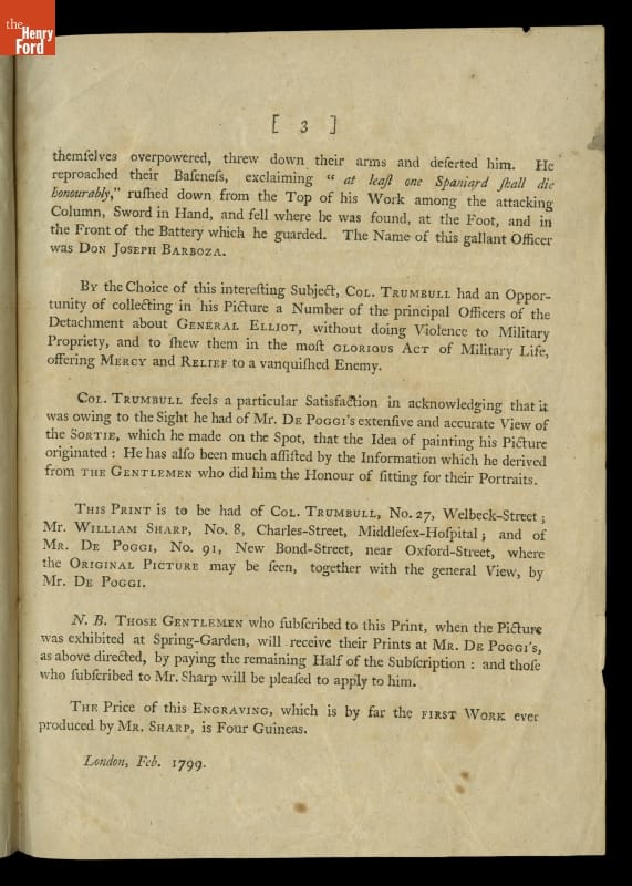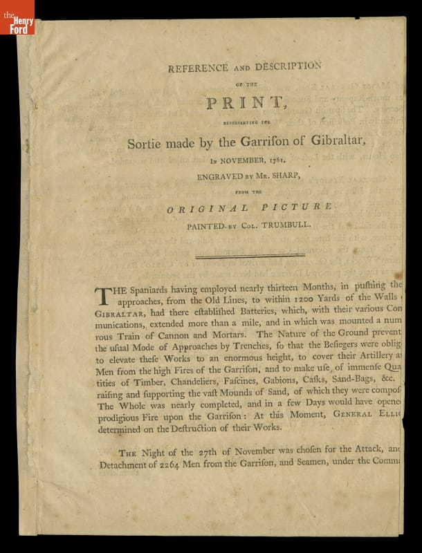 THF122862 / Pamphlet Advertising the Print of John Trumbull's Painting, "Sortie Made by the Garrison of Gibraltar," 1799