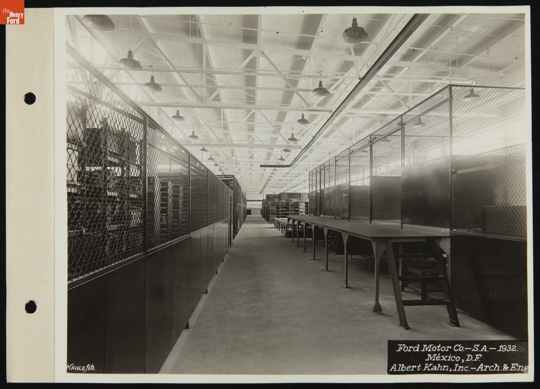 Guillermo Kahlo, father of artist Frida Kahlo, was one of the foremost architectural photographers in Mexico during the early 1900s. In 1932, Kahlo's studio documented the Ford Mexico City assembly plant. This visual record was created the same year Kahlo's son-in-law Diego Rivera began the Detroit Industry murals -- the monumental frescoes at the Detroit Institute of Arts funded by Edsel Ford.