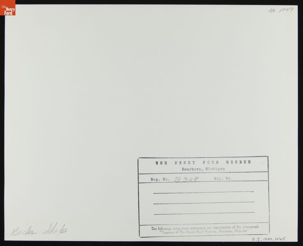 Exterior of the Greenfield Village Boiler Shop, Dearborn, Michigan, February 1950