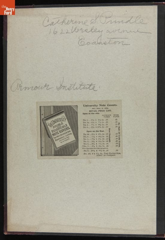 Catherine Prindle's Sewing Workbook, Armour Institute, 1901