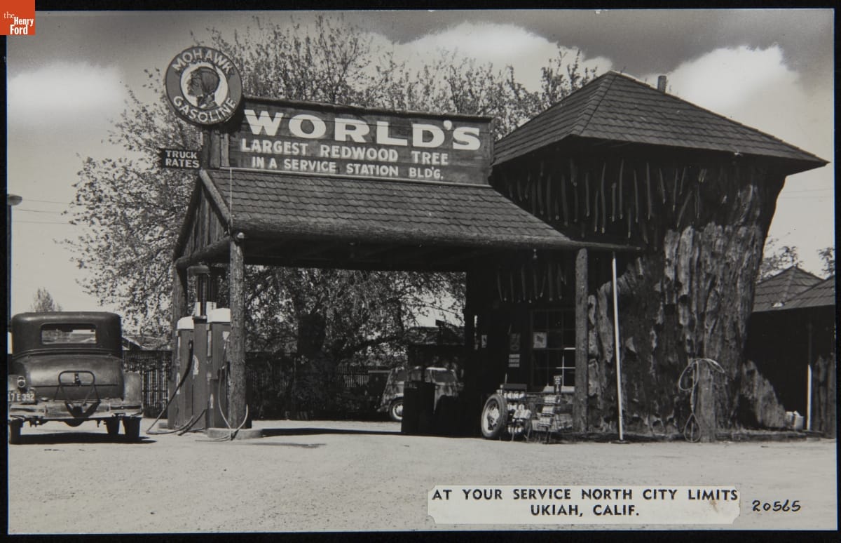 World's Largest Redwood Tree Service Station, Ukiah, California, 1937-1939