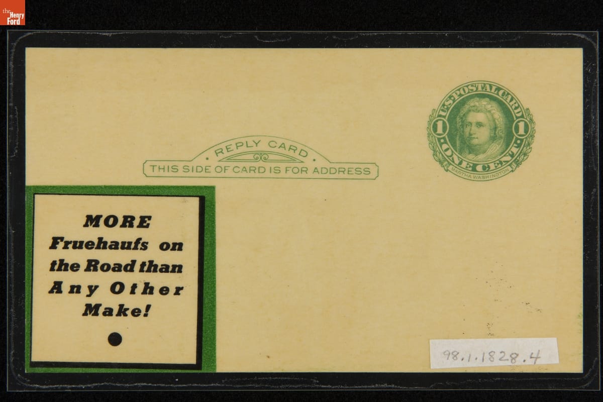 Fruehauf Trailer Co. Postal Card, "One Trailer's Earnings Have Started Many a Fleet," 1931-1941