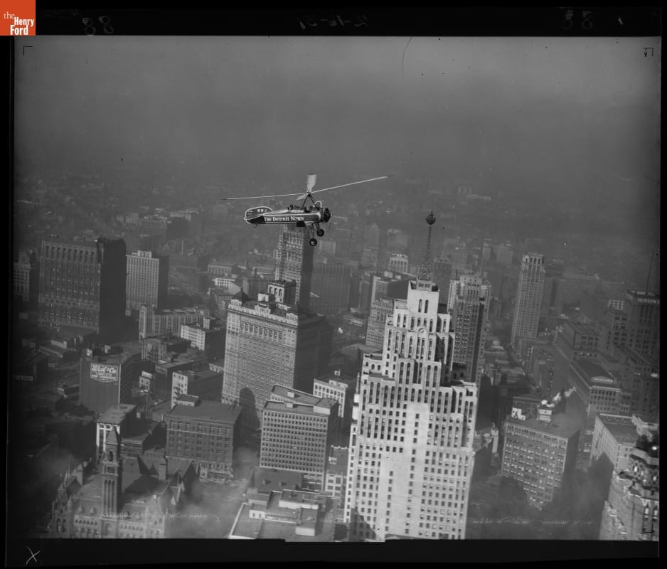The Detroit News operated an autogiro from 1931 to 1933. The novel aircraft carried a large, swiveling camera to take aerial photos of newsworthy events and transported reporters for quickly developing stories. However, it ultimately proved more useful as an advertisement for the paper. The autogiro made over 700 flights before it was donated to Henry Ford's museum in Dearborn.