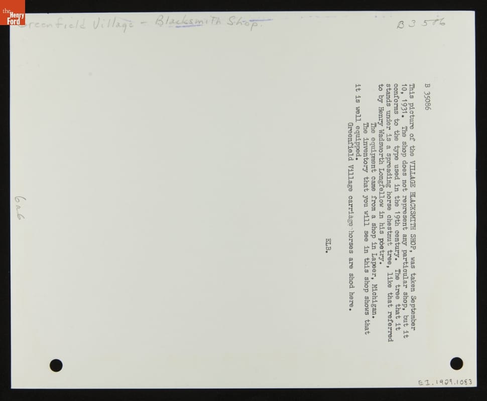 Blacksmith Shop in Greenfield Village, 1931