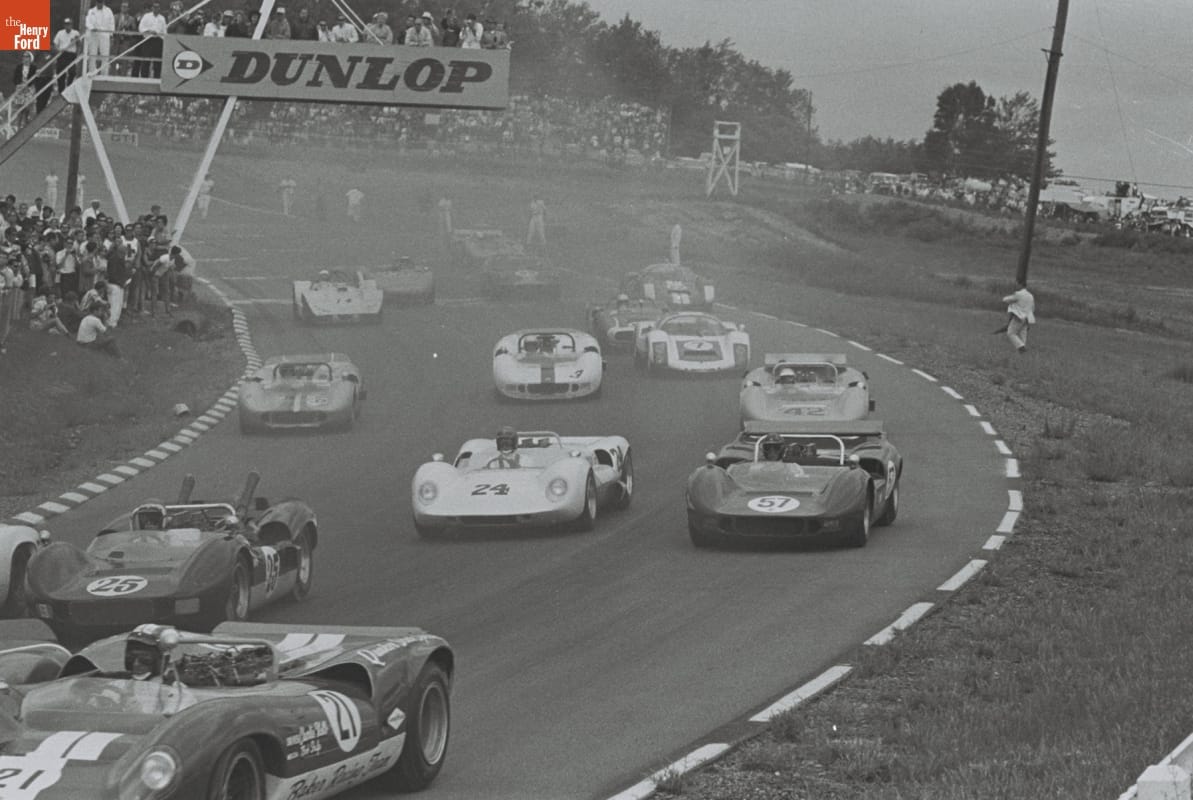 Dave Friedman has captured and preserved auto racing history through his photography. His work -- and his collection of works by other photographers -- documents key races, vehicles, drivers, and teams. This image was taken at the 1967 United States Road Racing Championship series race at Watkins Glen, New York. Mark Donohue dominated the 1967 series -- this was his fourth victory in the last five races.