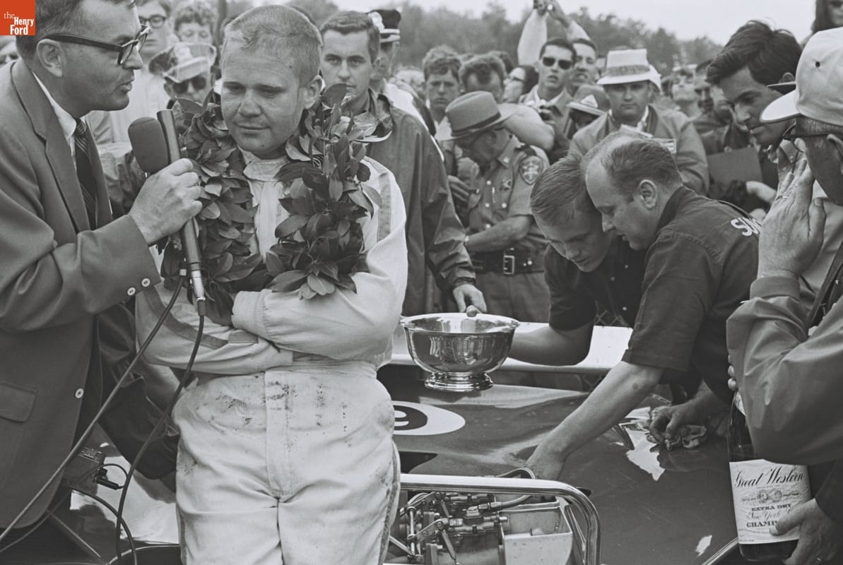Dave Friedman has captured and preserved auto racing history through his photography. His work -- and his collection of works by other photographers -- documents key races, vehicles, drivers, and teams. This image was taken at the 1967 United States Road Racing Championship series race at Watkins Glen, New York. Mark Donohue dominated the 1967 series -- this was his fourth victory in the last five races.