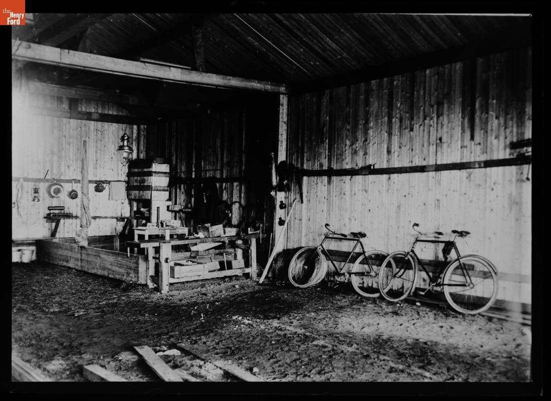 Just as he and his brother had done in North Carolina earlier in the decade, Wilbur Wright used a simple wooden hangar as his base of operations during his demonstration flights in France in 1908-1909. In addition to a workbench and tools for the airplane, the hangar included cooking utensils and a pantry stocked with canned goods.