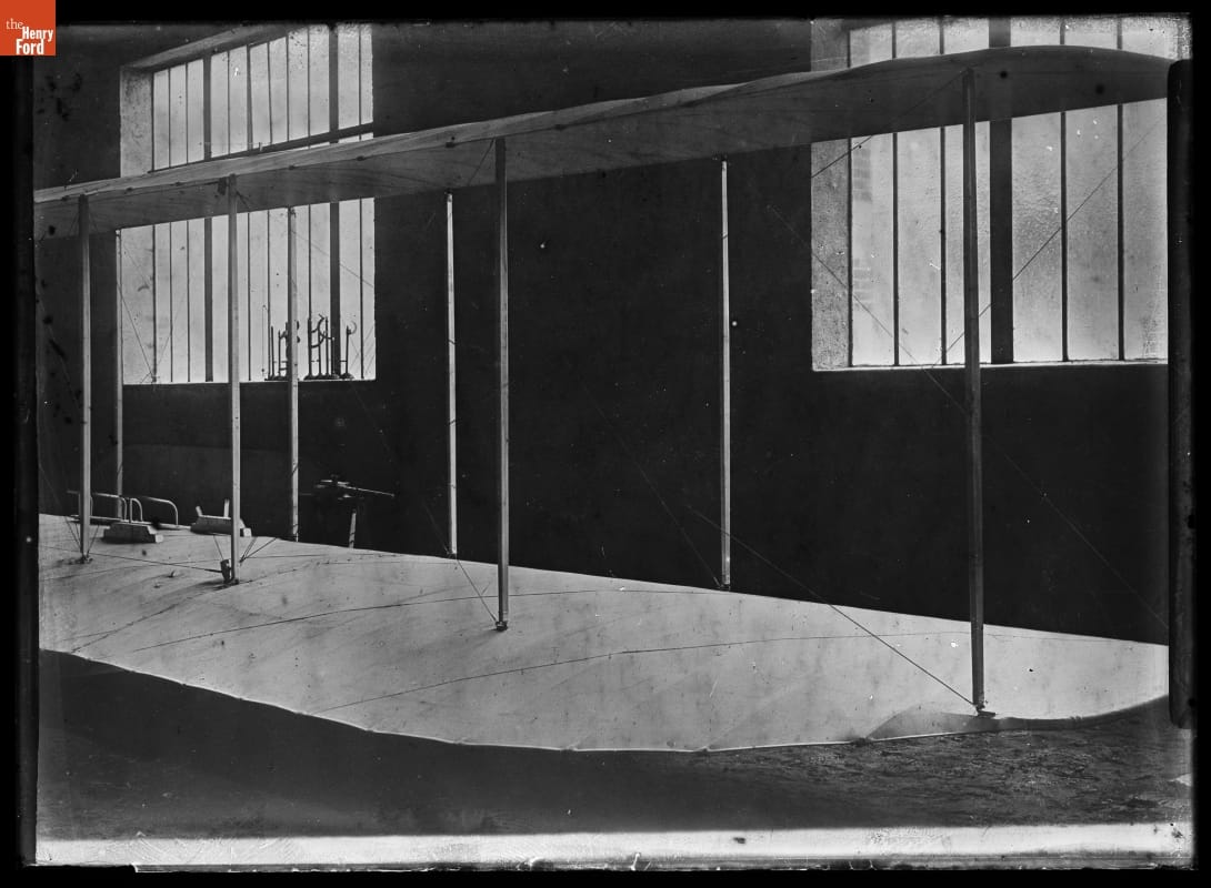 Wing of the Wright Flyer inside the Bollee Factory, Le Mans, France, 1908